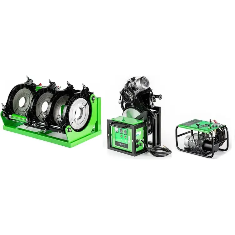 Гидравлическая стыковая сварочная машина ПРОСВАР С 450 предназначена для монтажа и ремонта трубопровода, транспортирующего воду, газообразные вещества, различные виды топлива и иные жидкости. С ее помощью осуществляют контактно-стыковую сварку полиэтиленовых, полипропиленовых и иных полимерных труб диаметром от 180 мм до 450 мм. Аппарат укомплектован центраторам с четырьмя прочными фиксаторами, обеспечивающими надежное крепление свариваемых труб и фасонных частей с любым показателем SDR. Набор редукционных вкладышей входит в комплектацию. Электрический торцеватель обеспечивает быстрое и точное торцевание концов свариваемых поверхностей. Антипригарное покрытие нагревательного элемента исключает прилипание разогретого полимерного материала. На электрощите расположен электронный терморегулятор для точной установки температуры плавления от 0 до 300 °C. Также имеется разъем для подключения прибора протоколирования.