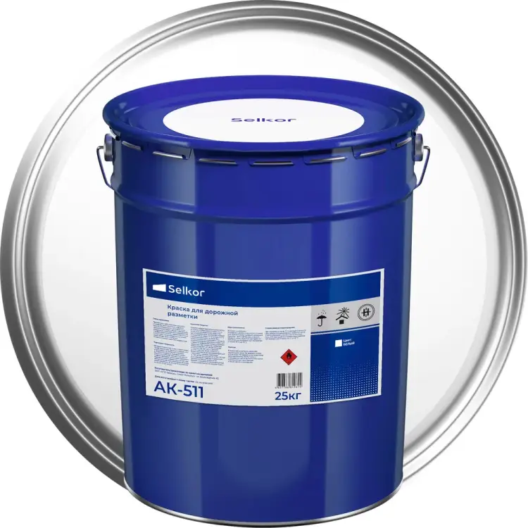 Краска АК-511 для разметки дорог представляет собой суспензию пигментов и наполнителей в акриловом сополимере с различными добавками. Предназначена для нанесения линий безопасности на автомобильных дорогах с асфальтовым покрытием.