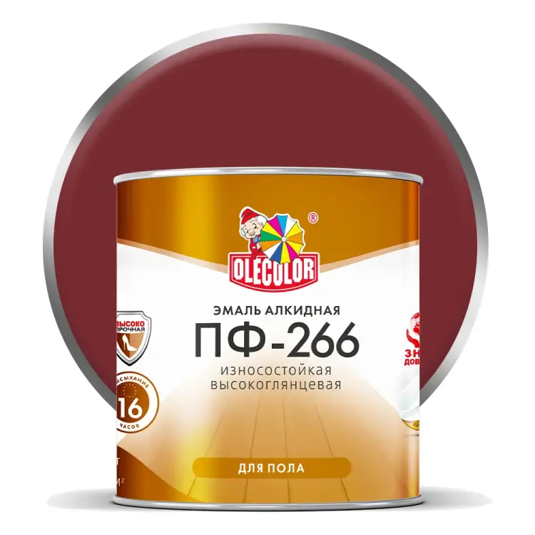Эмаль для пола OLECOLOR ПФ-266 красно-коричневый, 1.9 кг 4300000273 предназначена для покрытия окрашенных и неокрашенных полов по предварительно подготовленной поверхности. Высокая износостойкость - отлично выдерживает высокие эксплуатационные нагрузки и частое мытье с применением моющих средств. Высокоглянцевая - поверхность меньше пачкается, легче моется. Благодаря использованию импортных добавок и наполнителей эмаль отличается высокими защитными и декоративными свойствами. Подходит для внутренних и наружных работ под навесом. Расход на однослойное покрытие от 100 до 150 г/кв. м. Внимание! Фото может отличаться от товара, при выборе ориентируйтесь на технические характеристики.