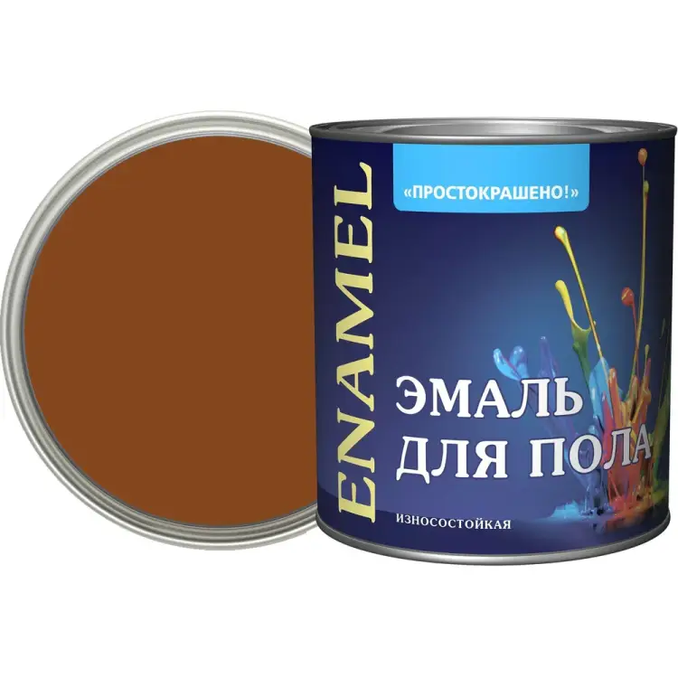 Эмаль для пола Простокрашено! желто-коричневая, 2.7 кг 7633 предназначена для покрытия окрашенных и неокрашенных деревянных полов и других деревянных поверхностей внутри помещения (настилы из дерева, древесно-волокнистых, древесно-стружечных плит и т.п.). Способ применения: Поверхность очистить от пыли, жировых и других загрязнений. Впадины и неровности выровнять шпатлевкой, загрунтовать. С ранее окрашенных поверхностей непрочные слои старой краски удалить скребком или специально предназначенной смывкой. Если при хранении на поверхности эмали образовалась пленка, то ее следует предварительно удалить. Состав тщательно перемешать до однородности при необходимости разбавить уайт-спиритом (нефрасом С4-155/200). ЛКМ наносят кистью или валиком на подготовленную сухую, чистую поверхность (на ранее окрашенный пол один или два слоя, на неокрашенный - два слоя). Расход: от 180 до 200 г/ кв. м (нанесение в один слой, в зависимости от типа и состояния поверхности).