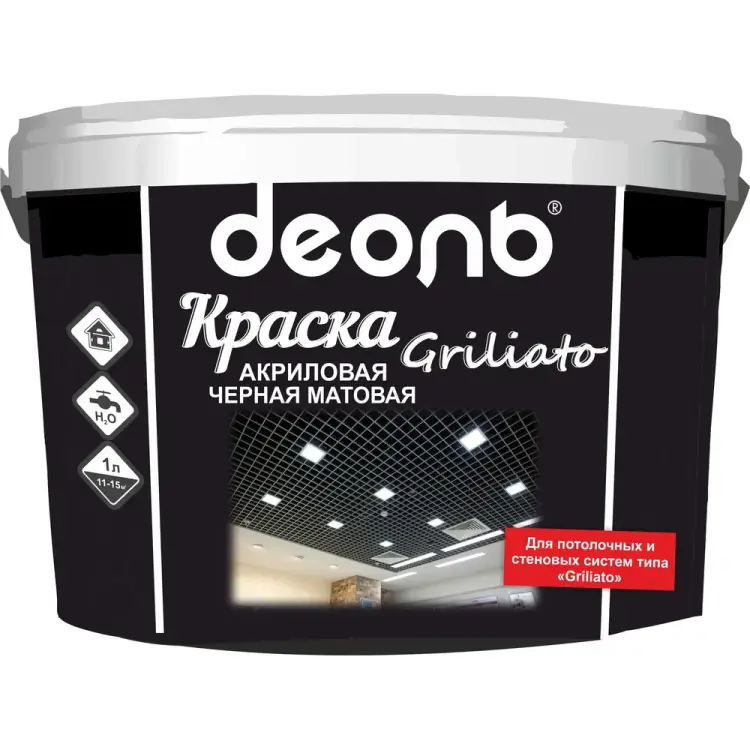 Водно-дисперсионная краска предназначена для окрашивания потолочных и стеновых систем типа «Griliato». Наносить в один слой кистью, валиком или распылять на сухую, очищенную от грязи и пыли, отслоившейся штукатурки и старой побелки поверхность. Работы производить при температуре воздуха и подложки не ниже +8°С и относительной влажности воздуха не более 80%.