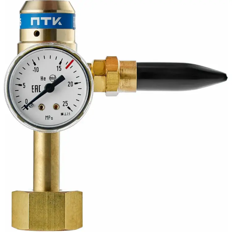 Редуктор гелиевый Г-45 ПТК 00000029812 используется для накачки латексных шаров. Оснащен резиновым мундштуком диаметром 15.3 мм со встроенным пусковым клапаном для подачи гелия в воздушный шар. Гелиевый редуктор Г-45 устанавливается на баллоны объёмом 20-50 л, которые изготовлены по ГОСТ 949-73 и укомплектованы вентилями типа ВК-94 или ВК-99, с присоединительной резьбой G 3/4”. Предназначен для работы при температуре от -5°С до 50°С.