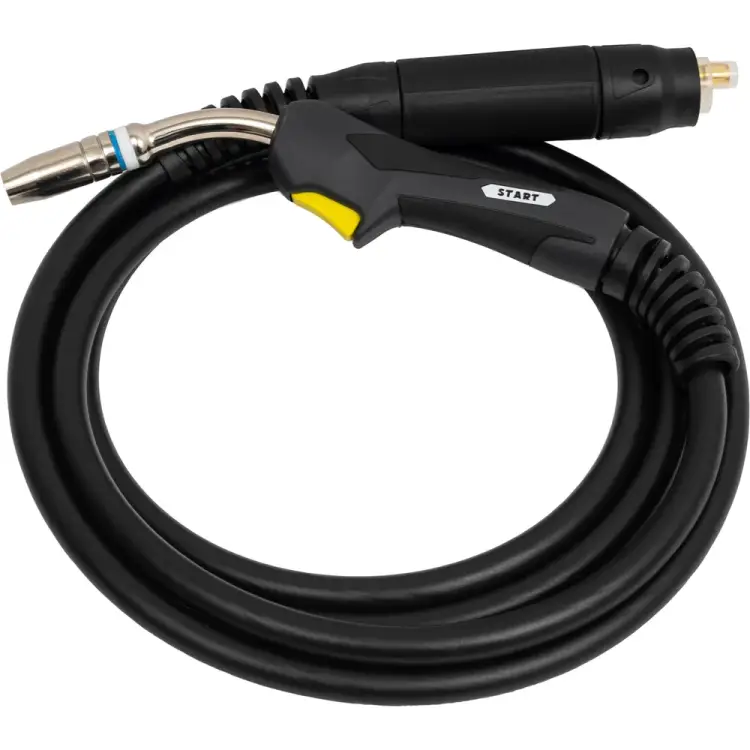 Горелка MIG-25 4 м Start ST2500-40 оснащена евроразъемом и подходит для всех типов полуавтоматов. Предназначена для полуавтоматической сварки в среде защитных газов сплошной проволокой. Отличительной особенностью данной горелки является ее качество относительно доступной стоимости. Все расходные части данной горелки стандартные (наконечники, сопла, держатели наконечников) и взаимозаменяемые с ведущими европейскими производителями сварочных горелок. Сварочный ток CO2 - 240 А Сварочный ток Mix - 210 A