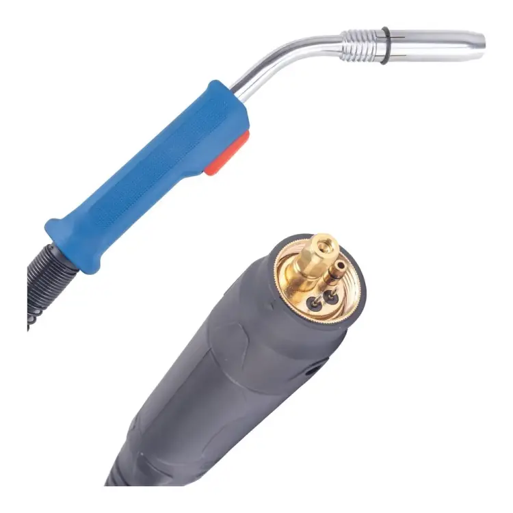 Сварочная горелка Varteg MIG-40 полуавтоматического процесса сварки MIG/MAG MIG-40 подключается к источнику питания сварочного тока, является неотъемлемым элементом данной установки.Свойства полуавтоматической горелки Varteg MIG-40:Горелка MIG-40 предназначена для аппаратов полуавтоматической сварки c центральным евроразъемом. Горелка имеет воздушное охлаждение. На ручке горелки установлен курок, который запускает или останавливает процесс сварки.Длина рукава горелки 3 метра.При работе с горелкой применяется сварочная проволока диаметрами от 1,2 до 1,6 мм. В горелке уже установлен канал красного цвета (Red) для сварочной проволоки диаметрами 1,0-1,2 мм. Чтобы работать диаметром 1,6 мм нужно докупить и установить канал жёлтого цвета (Yellow). Чтобы работать с алюминиевой проволокой, дополнительно нужно покупать тефлоновый канал, соответствующего диаметру проволоки цвета.В составе горелки присутствует гусак MIG-40. Он является неотъемлемой конструктивной частью полуавтоматической сварочной горелки. Подсоединяется к ручке горелки и удлиняет ее для удобства сварочного процесса. На гусак крепится сварочный наконечник и сопло, а также другие необходимые элементы.Горелка имеет высокостойкое к истиранию покрытие. Сам шланг-пакет выполнен из резины первичного отлива, что является гарантией устойчивости к деформации при смене температурного режима работы. Рукоятка сделана из качественного и приятного наощупь ABS пластика.В горелке реализована удобная замена расходных компонентов.