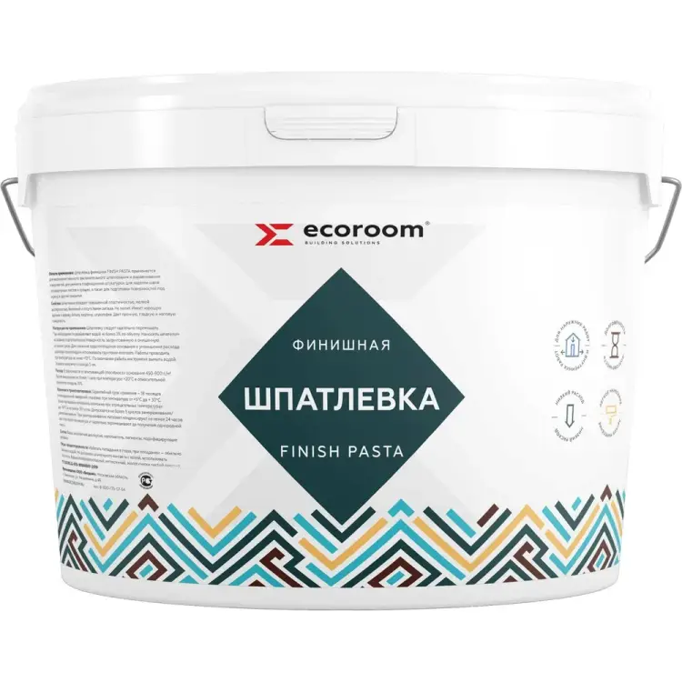 Шпатлевка для финишной отделки ECOROOM Finish pasta, белый, 16 кг Е-Шп-23/16 полностью готова к использованию. Содержит в себе связующие виниловые вещества и другие присадки, обеспечивающие ей высокие эксплуатационные и качественные характеристики по сравнению с аналогами. Благодаря однородной консистенции отличается высокой адгезией к любым поверхностям. Обладает низкой усадкой и замечательно подходит для нанесения на поверхности с глубокими трещинами. Перед применением может потребовать незначительного разбавления/размешивания. После использования сохраняет свои качественные характеристики на протяжении нескольких месяцев при условии хранения в плотно закупоренной таре.