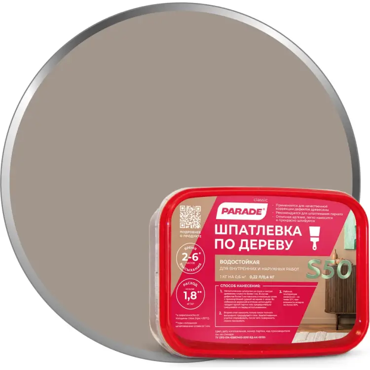 Шпатлевка по дереву Бук 0,4 кг S50 PARADE 90001262557 применяется для коррекции древесных поверхностей. Возможно смешивание с водными колерами. Без труда наносится даже новичками в обработке поверхностей. Состав шпатлевки - водная дисперсия акрилового сополимера. Способ применения. Подготовить поверхность к нанесению шпатлевки, удалить отслаивающиеся слои. Поверхность должна быть сухой и чистой. Нанести шпатлевку слоем 1 мм. Если дефекты глубокие разрешается наносить несколько слоев с промежуточной сушкой не менее 4 часов. Второй слой наносить после полного высыхания первого. Готовое покрытие отшлифовать. Покрыть готовую поверхность лаком или краской. Внимание! Фото может отличаться, при выборе ориентируйтесь на цвет, указанный в названии.