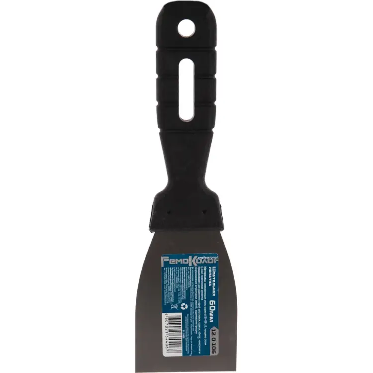 Шпательная лопатка РемоКолор 60 мм 12-0-106 имеет широкий спектр применения. Служит для демонтажа старых покрытий и нанесения новых смесей. Рабочая поверхность толщиной 0.5 мм обеспечивает износостойкость инструменту.