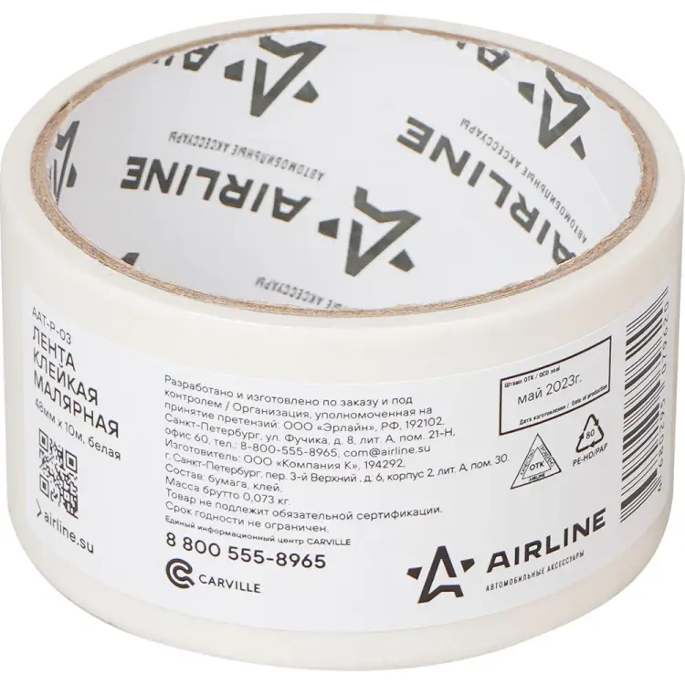 Клейкая малярная лента Airline 48 мм х 10 м, белая AAT-P-03 применяются для защиты поверхностей во время проведения малярных работ и создания четких границ при нанесении краски, так же может быть использована для маркировки различных предметов и других видов работ. Основная особенность ленты — в ее клеевом слое с относительно невысокой степенью адгезии, что позволяет удалить ленту, не повреждая поверхность под ней. Артикул: AAT-P-03 Состав: клей, бумага Толщина ленты, мм: 0,125 Длинна, м: 10 Размер: 48ммx10м Температура использования: -40/+60С Температура монтажа: +5С/+60С