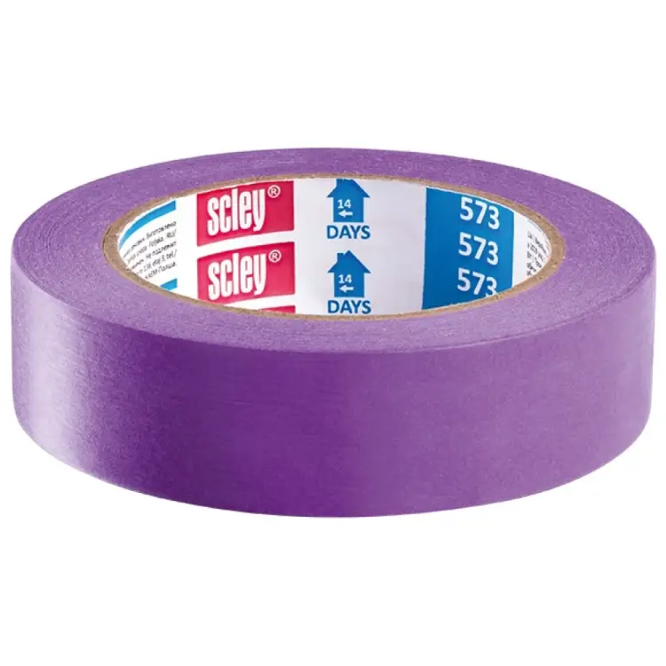 Малярная лента SCLEY серия 573, 38 мм х 33 метра, фиолетовая 0300-733338 рекомендуется для интерьерных малярных работ на деликатных поверхностях, таких как обои, лаки, лазури, дерево и свежеокрашенные поверхности. Срок бесследного удаления ленты 14 дней. Подходит для большинства малярных работ внутри и снаружи помещений. Хорошо приклеивается и легко снимается, не оставляя следов клея и не повреждая поверхности. Специальное покрытие ленты, устойчивое к ультрафиолетовому излучению. Идеальна для водорастворимых материалов. Обеспечивает четкие границы при окрашивании.