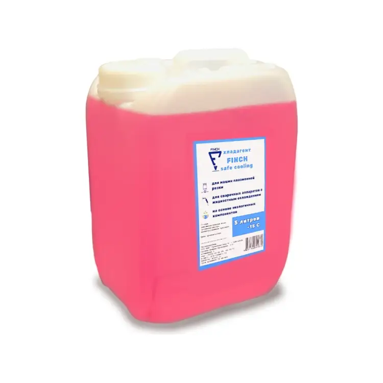 Хладагент на основе пропиленгликоля FINCH safe cooling предназначен для применения в машинах плазменной резки и полуавтоматической сварки. Хладагент обладает антикоррозийными свойствами для защиты компонентов системы охлаждения. Хладагент произведен на основе пропиленгликоля, что считается более безопасным для человека при его протечке и испарения, чем традиционные. Охлаждающая жидкость на основе пропиленгликоля FINCH safe cooling поставляется в канистрах по 5 литров и применяется при температуре окружающей среды до -15 С.