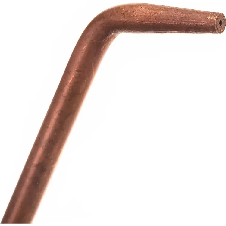 Совместим со стволами Г2; Г2У, или может использоваться вместо штатных наконечников.Сужающийся канал сформирован в медной трубке,благодаря этому длина загнутого участка наконечника минимальна, что позвроляет производить работы в стесненных условиях.Внимание, изображение товара может отличаться от реального!