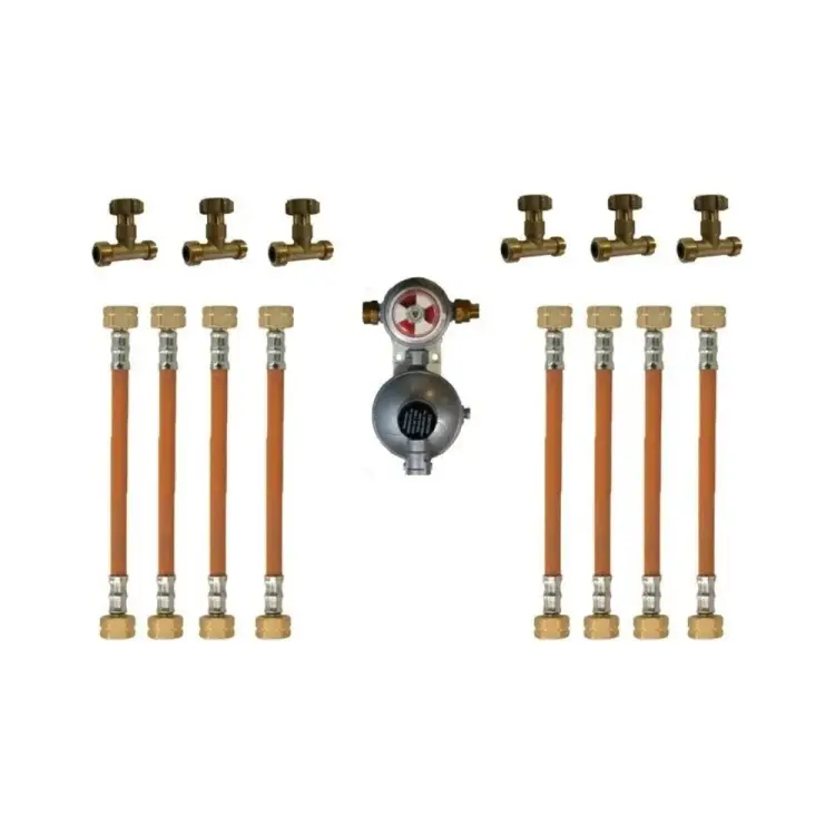 Пропановая рампа на 8 баллонов Cavagna Group РП-8 предназначена для подачи газа (пропан-бутан) из баллонов потребителю (котел, газовая плита и иное оборудование). Переключение с правой баллонной ветки на левую (и наоборот), происходит автоматически, при падении давления до установленного показателя. Прозрачная крышка позволяет визуально отслеживать какая баллонная ветка работает в данный момент. Присоединение баллонов производится с помощью специальной гибкой подводки высокого давления (входит в комплектацию). Входное давление: до 16 бар Выходное давление: 30 мбар (возможность регулировки 22-55 мбар) Вход: W21,8 (левая резьба, наружная) Выход: G1/2" (правая резьба, внутренняя) Диапазон рабочих температур от -30°С до +60°С Материал корпуса: сплав цинка