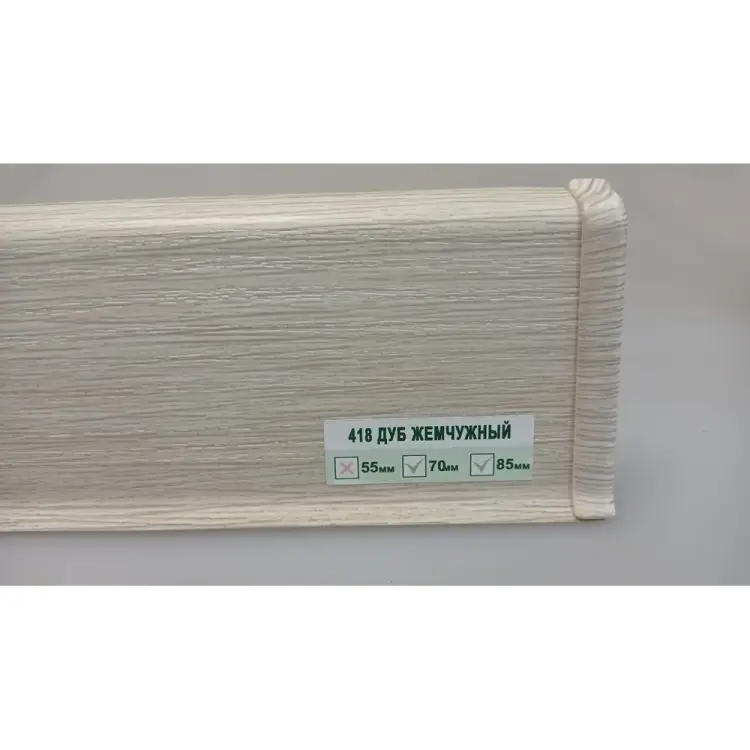 Напольный плинтус DECONIKA (85 мм; 2,2 м; 418 дуб жемчужный; 1 шт.) Д-П85 418 ДУБ ЖМЧ - современный продукт, безупречно сочетающийся с любыми современными отделочными материалами. Строгие классические формы и благородный глянец гармонично подчеркнут декор как в домашнем интерьере, так и в современном офисе. Все профили коллекции с лёгкостью собираются в единую систему благодаря единой эстетике и стандартности размеров. Состоит из двух частей – задний монтажный профиль и цельная лицевая часть. Легкосъемность цельной лицевой части является отличительной чертой новой коллекции. Продуманная форма и перфорация основы профиля существенно облегчают её монтаж.