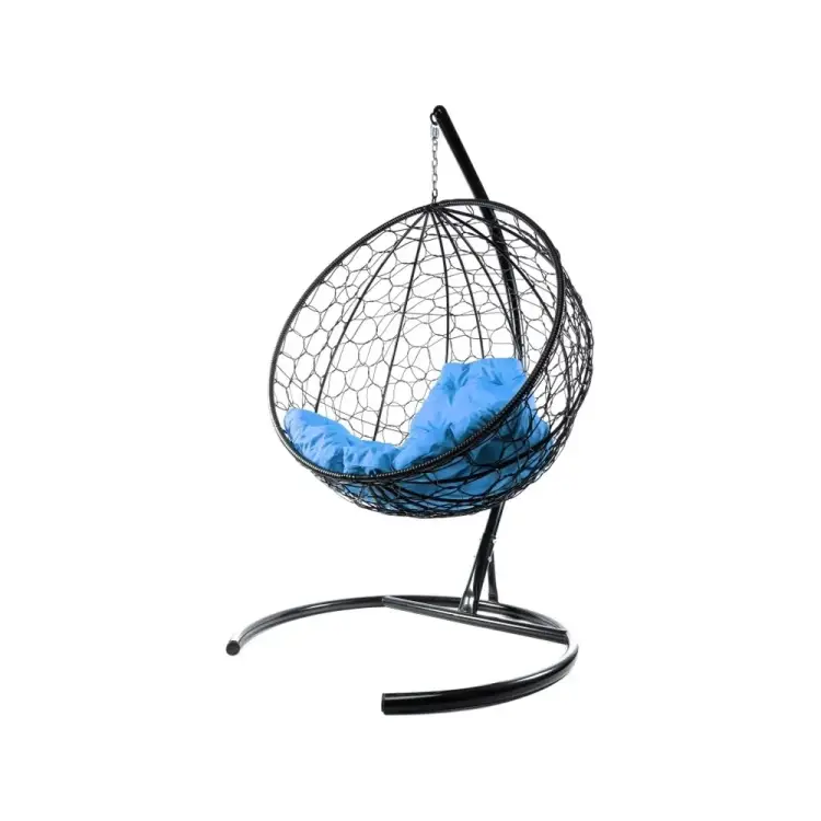 Подвесное кресло-кокон подойдет не только для дома или дачного участка, как место отдыха на свежем воздухе, он прекрасно впишется в современные интерьеры квартиры и офисов. Стальной каркас, оплетенный искусственным ротангом, обладает высокими прочностными характеристиками, устойчив к коррозии, и является разборной конструкцией. Кокон подвешивается на стойке из трубы толщиной 51 мм, выдерживает нагрузку до 120 кг, этого достаточно для комфортного размещения одного человека.