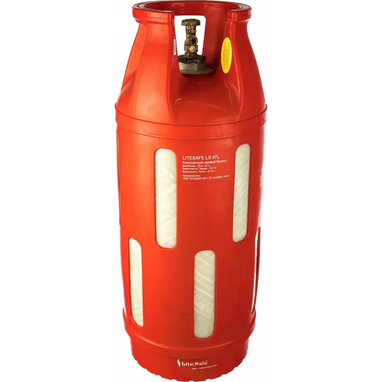 Газовый баллон LiteSafe LS 47L предназначен для хранения и транспортировки сжиженных газов. Изготовлен из композитного материала, состоящего из стекловолоконной нити, покрытой эпоксидной смолой. Такой материал выдерживает внешние и внутренние нагрузки, не нарушая первоначальных свойств содержимого. Внутренний резервуар выполнен из полипропилена PE и содержит специальные волокна и химикаты, обеспечивающие высокую непроницаемость. Для удобства эксплуатации баллон помещен в кожух из полимерного материала. Следует помнить, что при увеличении температуры давление возрастает, поэтому при хранении и транспортировке не допускайте резкого повышения температуры. Сферы применения полимерно-композитных газовых баллонов: Газоснабжение, отопление дома, дачи, коттеджа; Использование в туристических целях, на рыбалке, в походе для обогрева, приготовления пищи, освещения; Строительство, промышленность и другие сферы. Преимущества: Легкий вес; Видимость уровня газа; Абсолютная взрывобезопасность; Антикоррозийность; Материал корпуса исключает искрообразование; Привлекательный дизайн. Дополнительные параметры: Вес/объем газа — 20 кг/47 л; Пропан, вместимость — 19.7 кг; Бутан, вместимость — 23.5 кг; Рабочее давление — 20 Бар; Тестовое давление — 30 Бар; Давление на разрыв — >140 Бар; Высота — 850 мм; Диаметр — 342 мм; Вес — 12.35 кг; Рабочая температура от -60 до +70°С.