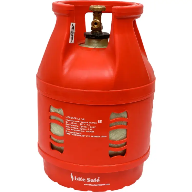 Баллон полимерно-композитный Litesafe LS 14L предназначен для хранения и транспортировки сжиженных газов. Изготовлен из композитного материала, состоящего из стекловолоконной нити, покрытой эпоксидной смолой. Такой материал выдерживает внешние и внутренние нагрузки, не нарушая первоначальных свойств содержимого. Внутренний резервуар выполнен из полипропилена PE и содержит специальные волокна и химикаты, обеспечивающие высокую непроницаемость. Для удобства эксплуатации баллон помещен в кожух из полимерного материала. Следует помнить, что при увеличении температуры давление возрастает, поэтому при хранении и транспортировке не допускайте резкого повышения температуры. Сферы применения полимерно-композитных газовых баллонов: Газоснабжение, отопление дома, дачи, коттеджа. Использование в туристических целях, на рыбалке, в походе для обогрева, приготовления пищи, освещения. Строительство, промышленность и другие сферы. Преимущества: Легкий вес. Видимость уровня газа. Абсолютная взрывобезопасность. Антикоррозийность. Материал корпуса исключает искрообразование. Привлекательный дизайн. Дополнительные параметры: Вес/объем газа — 6 кг/14 л; Пропан, вместимость — 5.8 кг; Бутан, вместимость — 7 кг; Рабочее давление — 20 Бар; Тестовое давление — 30 Бар; Давление на разрыв — >140 Бар; Высота — 443 мм; Диаметр — 302 мм; Вес — 5.5 кг; Рабочая температура от -40 до +60°С.