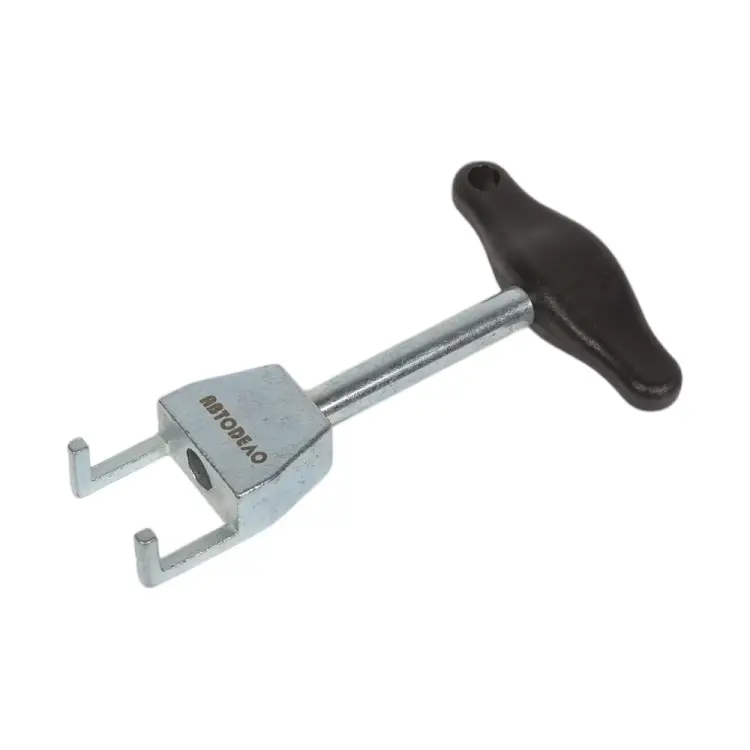 Съемник катушек зажигания АвтоDело VAG 1.4/1.6 40448 14947 произведен из прочной закаленной стали. Материал износоустойчив, не восприимчив к внешнему воздействию и имеет хромированное покрытие для защиты от коррозии. Модель совместима с такими моделями Volkswagen, как: Bora; Polo; FSI; Golf; Lupo 4-Zyl; Touran с объемом двигателя 1,4/1,6 л; Passat; новый Beetle; T4; Phaeton. Съемник имеет специальную конструкцию, благодаря чему пользователь может самостоятельно демонтировать катушку зажигания без повреждения. Пластиковая ручка модели обеспечивает удобный и надежный хват.