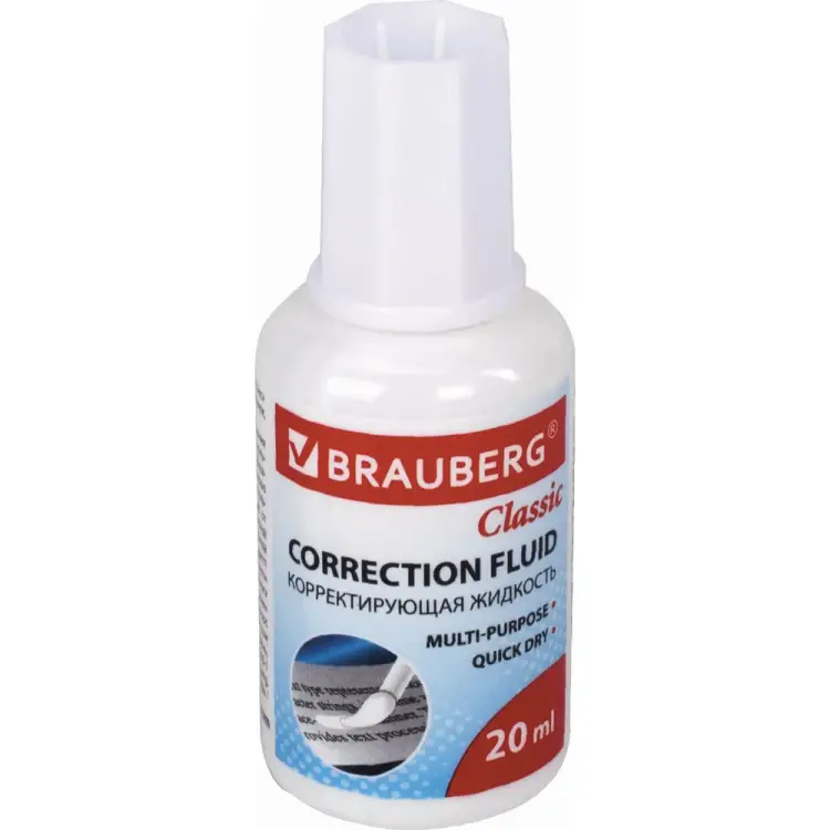 Быстросохнущая корректирующая жидкость BRAUBERG Classic с кисточкой 20 мл 220255 предназначена для исправления текста. Не содержит вредных веществ, поэтому безопасна для здоровья. Ложится ровным гладким слоем, что обеспечивает качественную корректировку. Жидкость быстро высыхает, благодаря чему отличается практичностью.