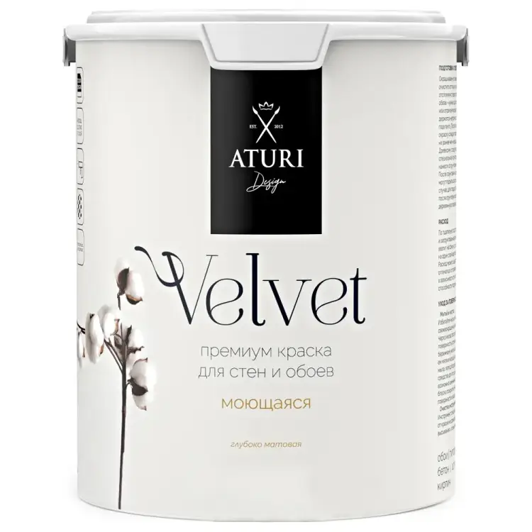 Краска для стен и обоев ATURI Design Velvet локрийский лен, 1.5 кг T4-000120194 - интерьерная акриловая водоэмульсионная моющаяся краска, может использоваться для обработки стен, потолка и потолочной плитки, для обоев, дверей и т. д. внутри помещения (гостиная, детская, коридор/прихожая, кухня, офис/кабинет, спальня, балкон). Благодаря составу, продукт имеет отличные адгезионные свойства к поверхностям: бумага, штукатурка, бетон, гипсокартон, ДСП, дерево, МДФ, кирпич, фанера, шпатлевка. Краска на водной основе равномерно распределяется по основанию при помощи кисти, валика или краскопульта и образует матовое водоотталкивающее покрытие. Глубоко-матовая поверхность достигается за счет мрамора мелкого помола в составе краски, что придает декоративные свойства и приятную бархатистую структуру. Для получения максимальной прочности и износостойкости покрытия, верхним слоем можно нанести специальный лак. Особенно рекомендуется наносить лак на поверхности, подвергающиеся повышенной эксплуатационной нагрузке, и в помещениях с повышенной влажностью. При этом важно учитывать, что лак может сделать покрытие более глянцевым. Расход: 0.1 кг/кв. м.